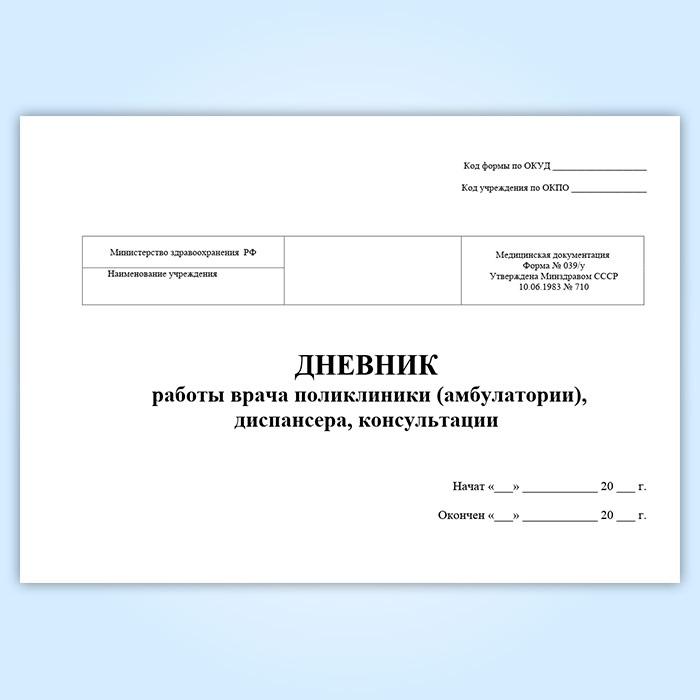 Дневник работы врача поликлиники (амбулатории), диспансера, консультации (форма 039/у) в Улан-Удэ купить