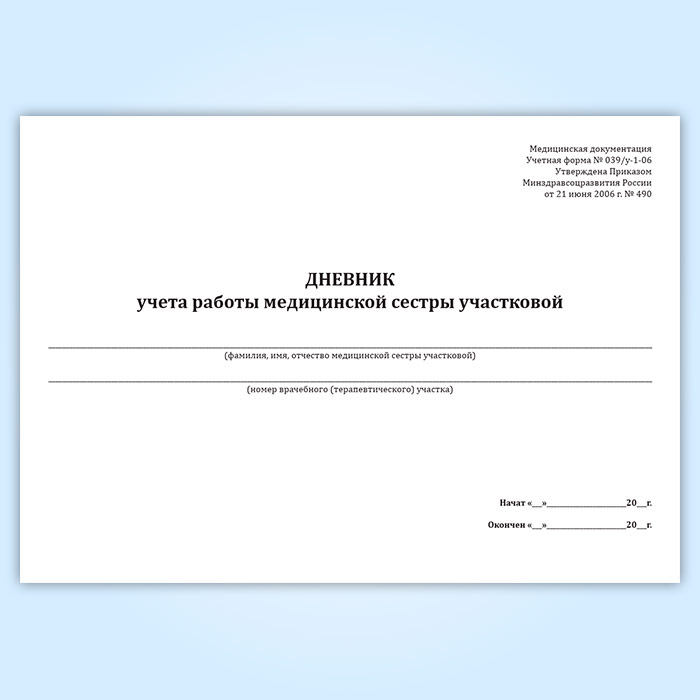 Дневник учета работы медицинской сестры участковой (форма 039/у-1-06) в Улан-Удэ купить