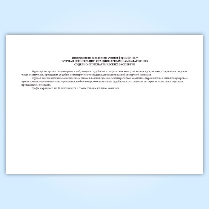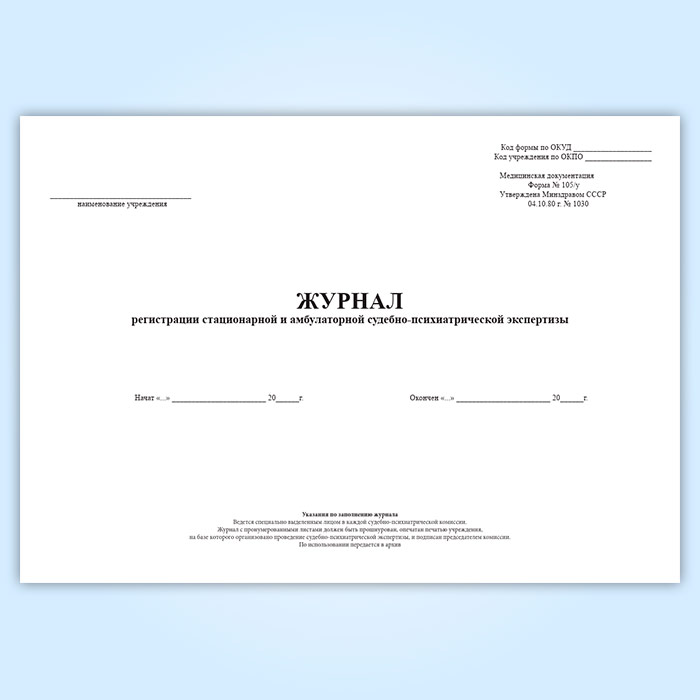 Журнал регистрации стационарной и амбулаторной судебно-психиатрической экспертизы (форма 105/у) в Улан-Удэ купить