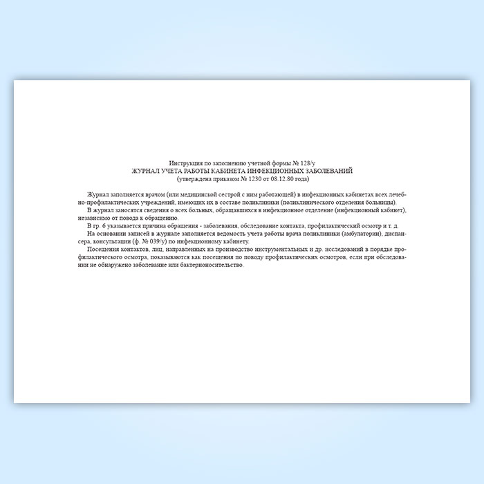 Журнал учета работы кабинета инфекционных заболеваний (форма 128/у) в Улан-Удэ купить