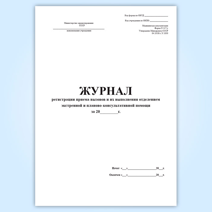 Журнал регистрации приема вызовов и их выполнения отделением экстренной и планово-консультативной помощи (форма 117/у) в Улан-Удэ купить