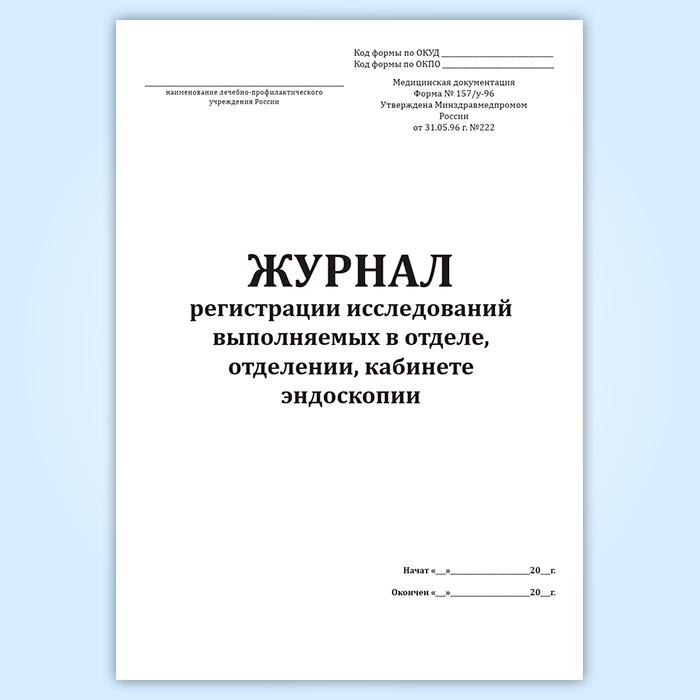 Журнал регистрации исследований выполняемых в отделе, отделении, кабинете эндоскопии (форма № 157/у-96) в Улан-Удэ купить