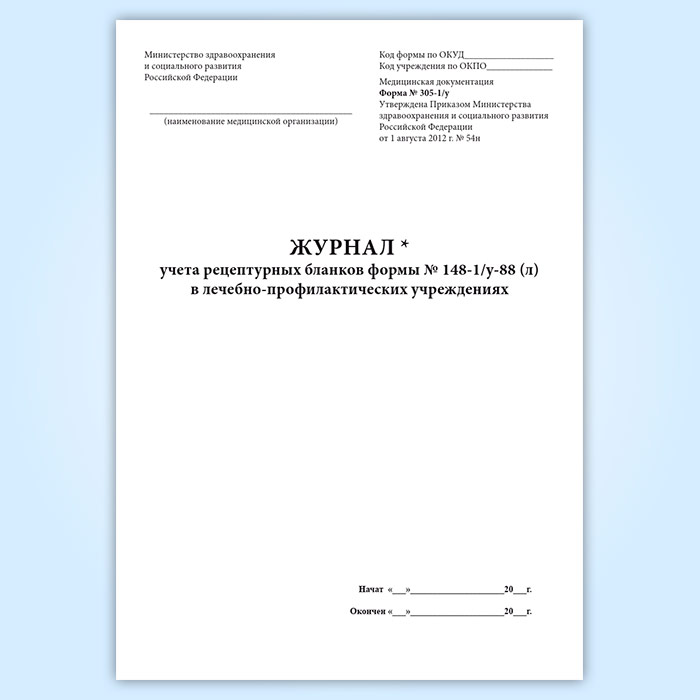 Журнал учета рецептурных бланков формы № 148-1/у-88 (л) в лечебно-профилактических учреждениях форма 305/у-1 в Улан-Удэ купить