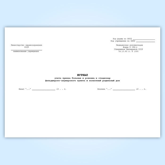 Журнал учета приема больных и рожениц в стационар фельдшерско-акушерского пункта, колхозного родильного дома (форма 098/у) в Улан-Удэ купить