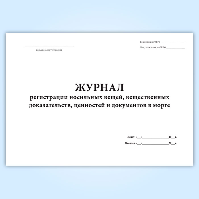 Журнал регистрации носильных вещей, вещественных доказательств, ценностей и документов в морге (форма 191/у) в Улан-Удэ купить