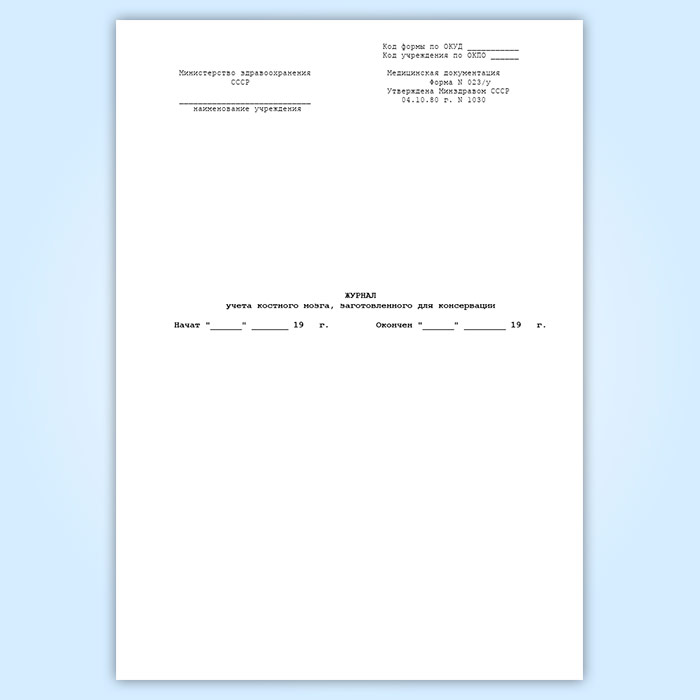 Журнал учета костного мозга, заготовленного для консервации (форма 023/у) в Улан-Удэ купить