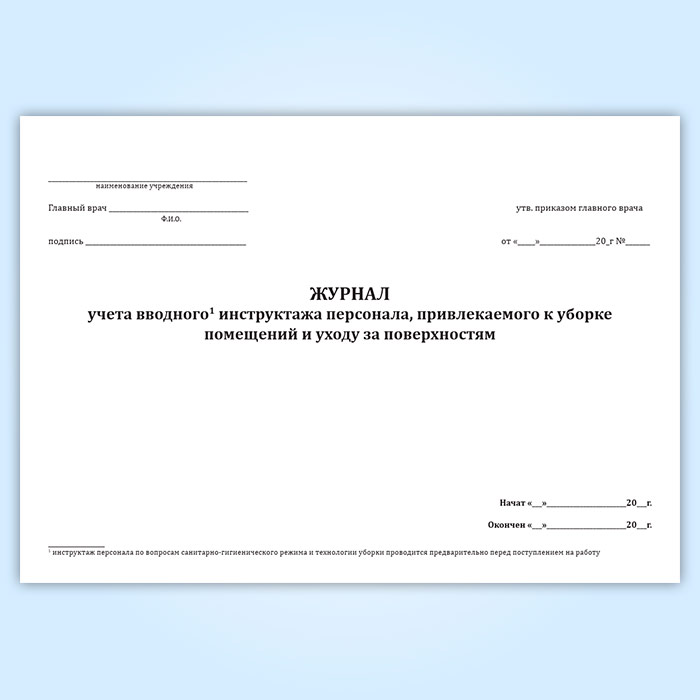 Журнал учета вводного инструктажа персонала, привлекаемого к уборке помещений и уходу за поверхностями в Улан-Удэ купить