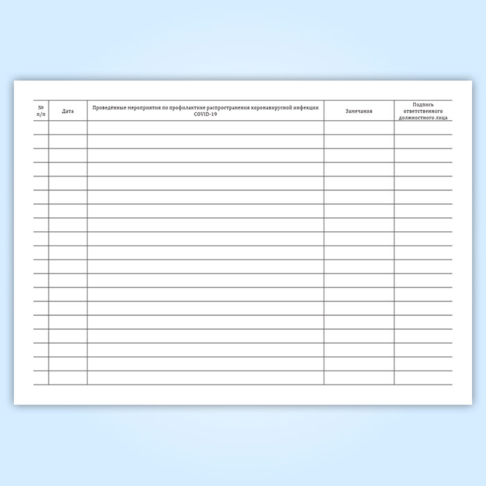 Журнал учета проведенных мероприятий по профилактике распространения коронавирусной инфекции COVID-19 в Улан-Удэ купить