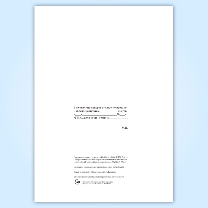 Вы получаете печатную продукцию прошнурованной и c местом для вашей печати в соответствии с действующими нормативными документами: