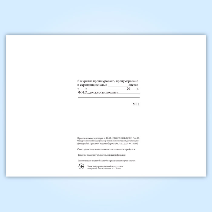 Вы получаете печатную продукцию прошнурованной и c местом для вашей печати в соответствии с действующими нормативными документами: