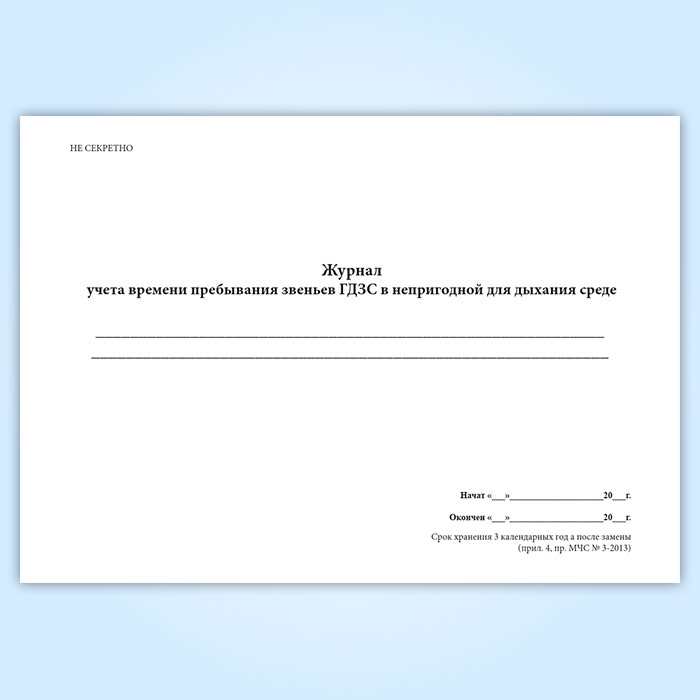 Журнал учета времени пребывания звеньев ГДЗС в непригодной для дыхания среде в Улан-Удэ купить