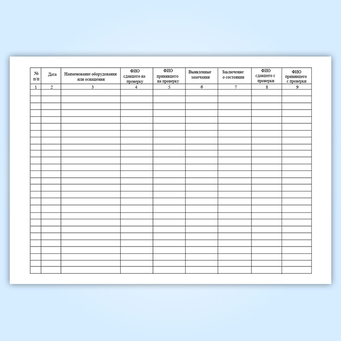 Журнал регистрации сдачи и выдачи оборудования и средств технического оснащения НАСФ на проверку в Улан-Удэ купить