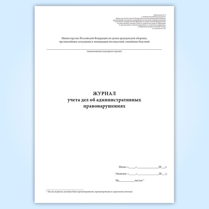 Журнал учета дел об административных правонарушениях (Приказ МЧС России от 14.06.2016 № 323) в Улан-Удэ купить