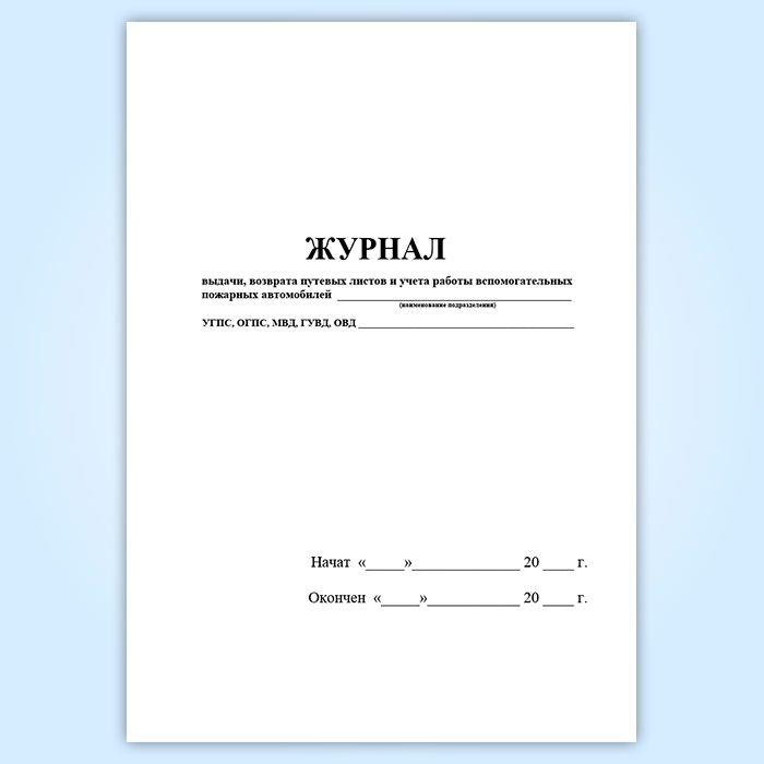 Журнал выдачи, возврата путевых листов и учета работы вспомогательных пожарных автомобилей в Улан-Удэ купить