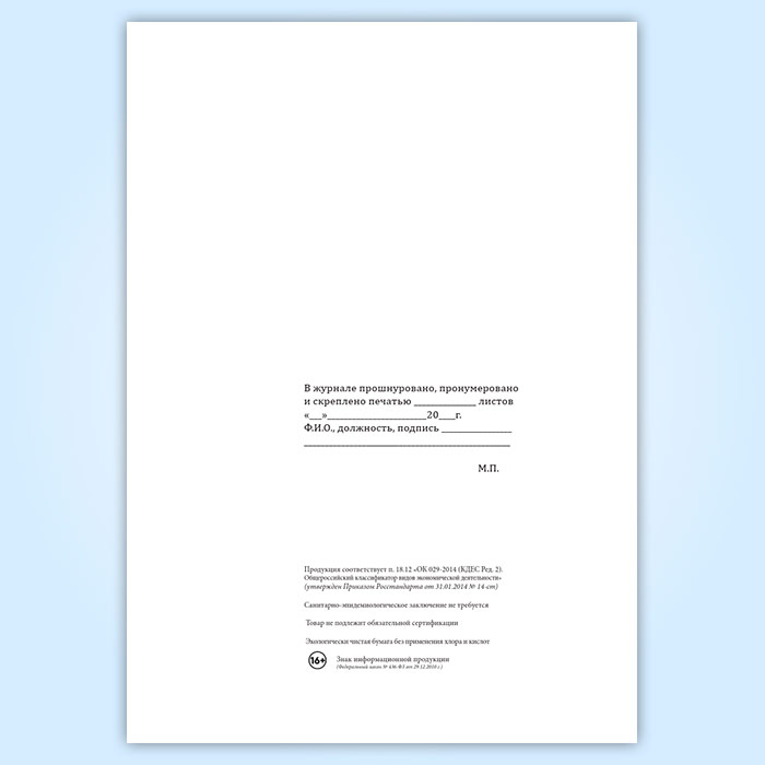 Вы получаете печатную продукцию прошнурованной и c местом для вашей печати в соответствии с действующими нормативными документами: