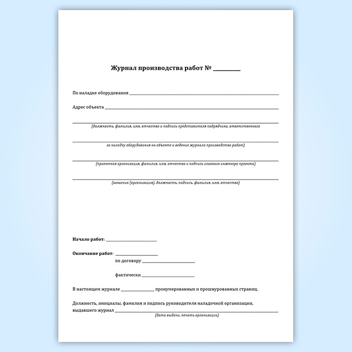 Журнал производства работ по наладке оборудования на объекте (СП 245.1325800.2015) в Улан-Удэ купить