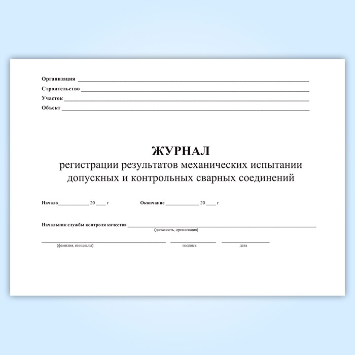 Журнал регистрации результатов механических испытаний допускных и контрольных сварных соединений в Улан-Удэ купить