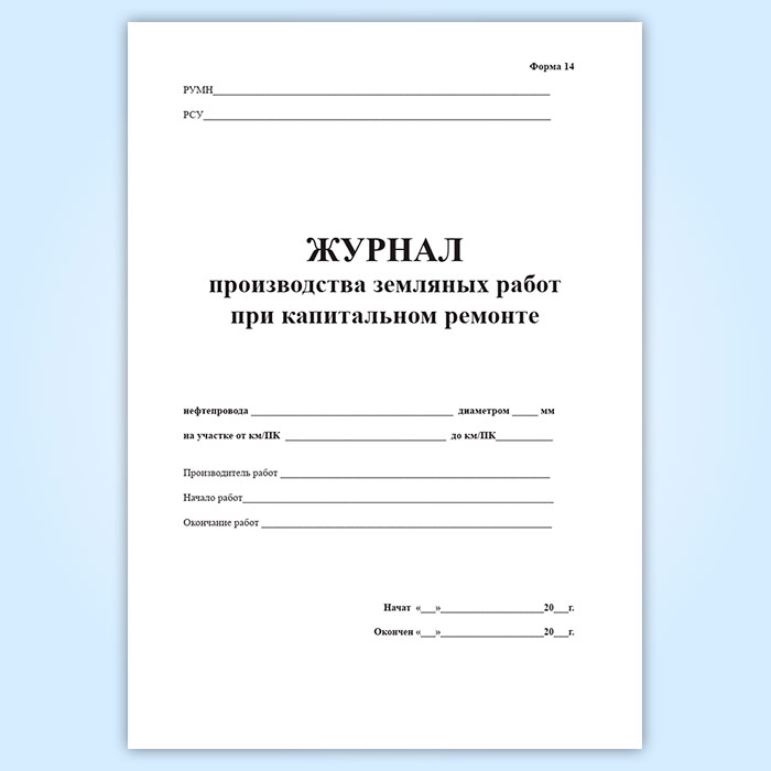 Журнал производства земляных работ при капитальном ремонте (форма 14) в Улан-Удэ купить