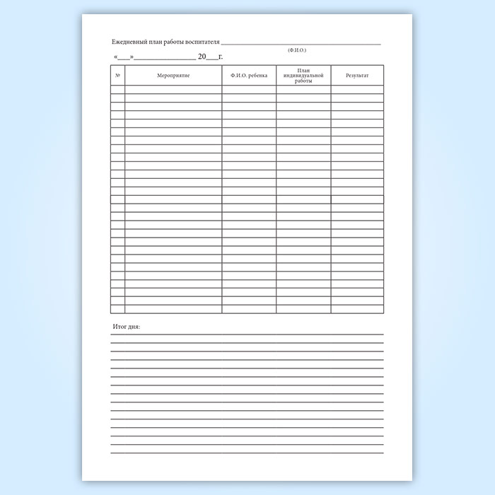 Ежедневный план работы воспитателя в Улан-Удэ купить