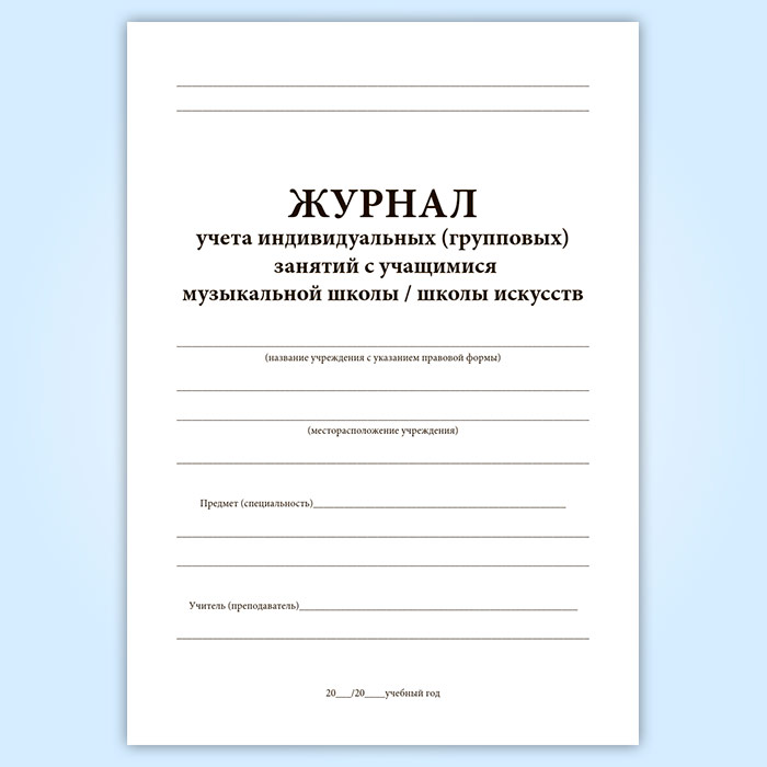 Журнал учета индивидуальных (групповых) занятий с учащимися музыкальной школы, школы искусств в Улан-Удэ купить