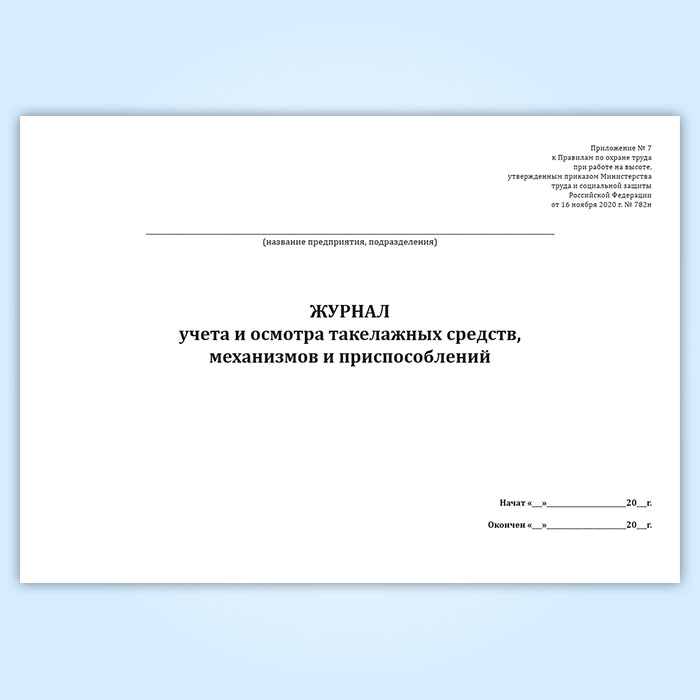 Журнал учета и осмотра такелажных средств, механизмов и приспособлений (Приказ Минтруда России от 16.11.2020 N 782н) в Улан-Удэ купить