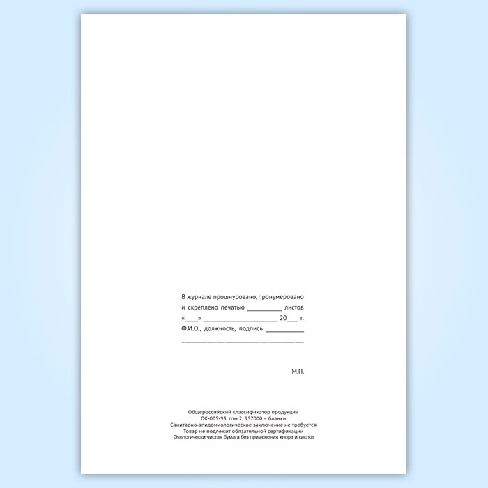 Вы получаете печатную продукцию прошнурованной и c местом для вашей печати в соответствии с действующими нормативными документами: