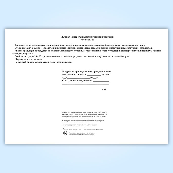 Журнал контроля качества готовой продукции (форма К-11) в Улан-Удэ купить