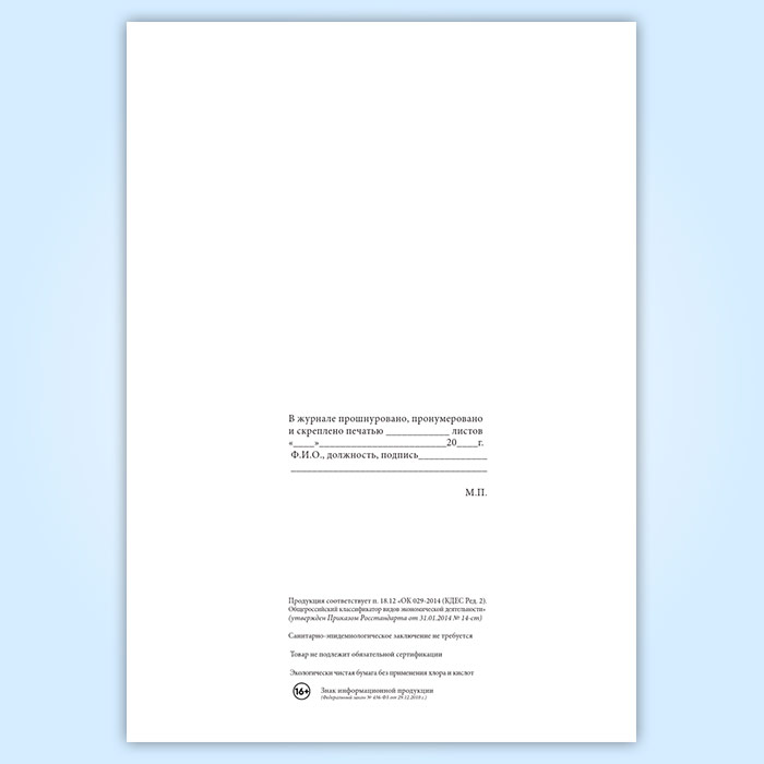 Вы получаете печатную продукцию прошнурованной и c местом для вашей печати в соответствии с действующими нормативными документами: