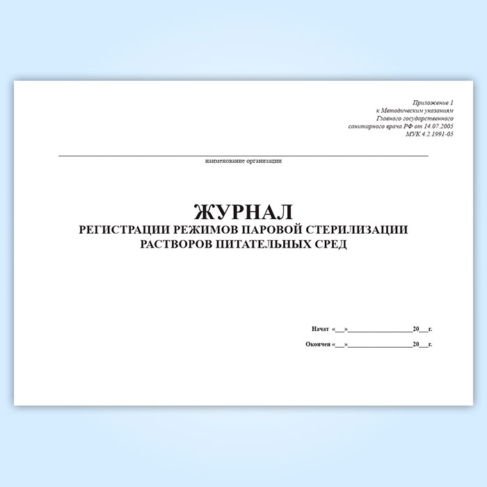 Журнал регистрации режимов паровой стерилизации растворов питательных сред в Улан-Удэ купить