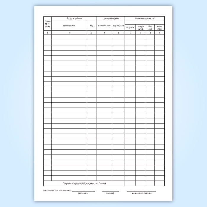 Журнал учета столовой посуды и приборов, выдаваемых подотчет сотрудникам предприятия (специализированная форма 16-ОПит) в Улан-Удэ купить