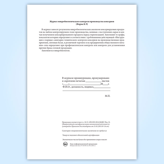 Журнал микробиологического контроля производства консервов (форма К-9) в Улан-Удэ купить