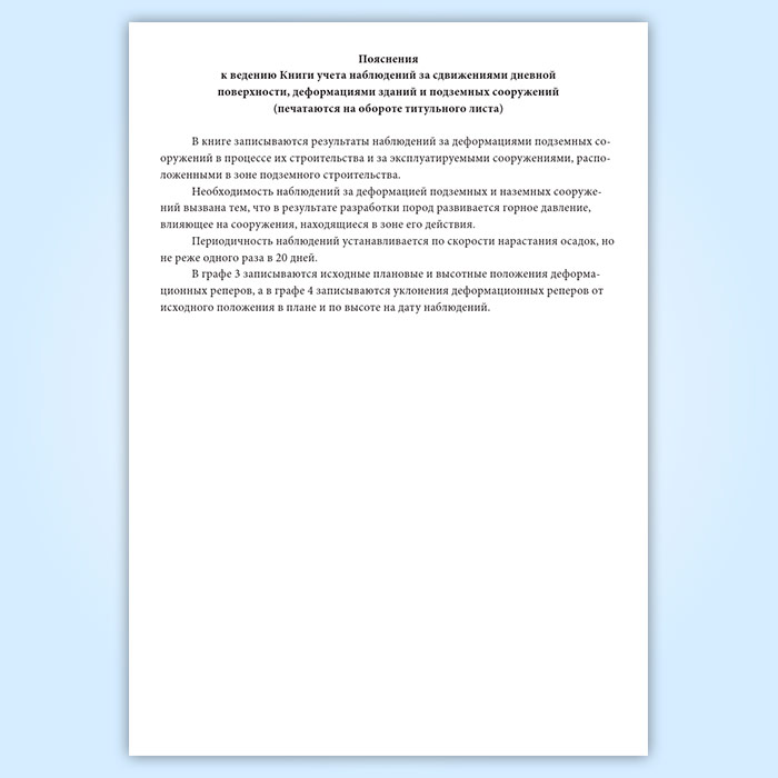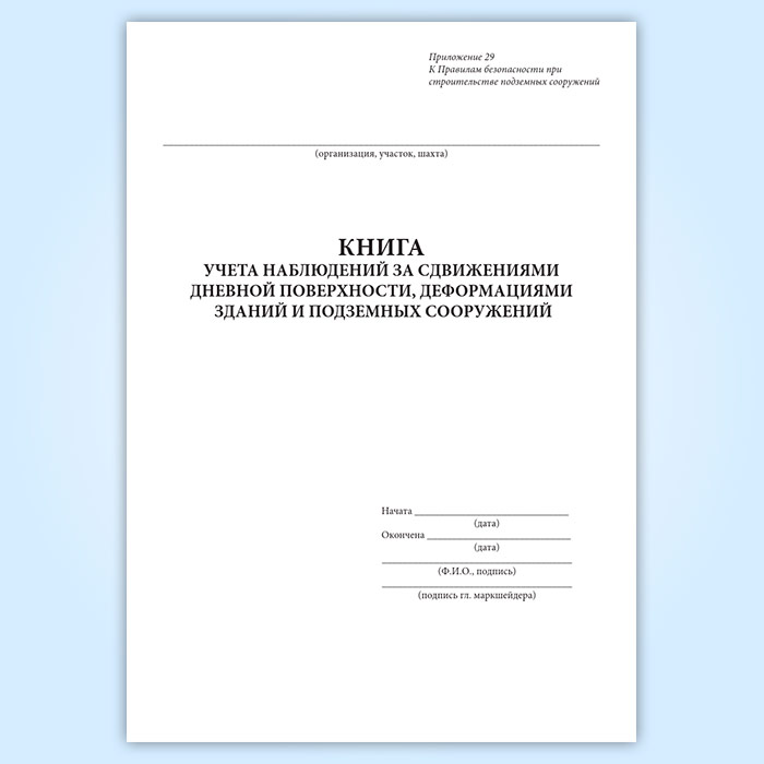 Книга учета наблюдений за сдвижениями дневной поверхности, деформациями зданий и подземных сооружений в Улан-Удэ купить