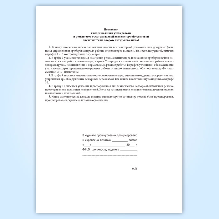 Книга учета работы и результатов осмотра главной вентиляторной установки в Улан-Удэ купить