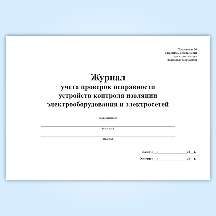 Журнал учета проверок исправности устройств контроля изоляции электрооборудования и электросетей в Улан-Удэ купить