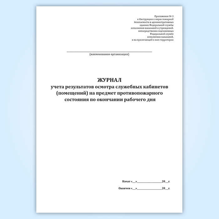 Журнал учета результатов осмотра служебных кабинетов (помещений) на предмет противопожарного состояния по окончании рабочего дня в Улан-Удэ купить