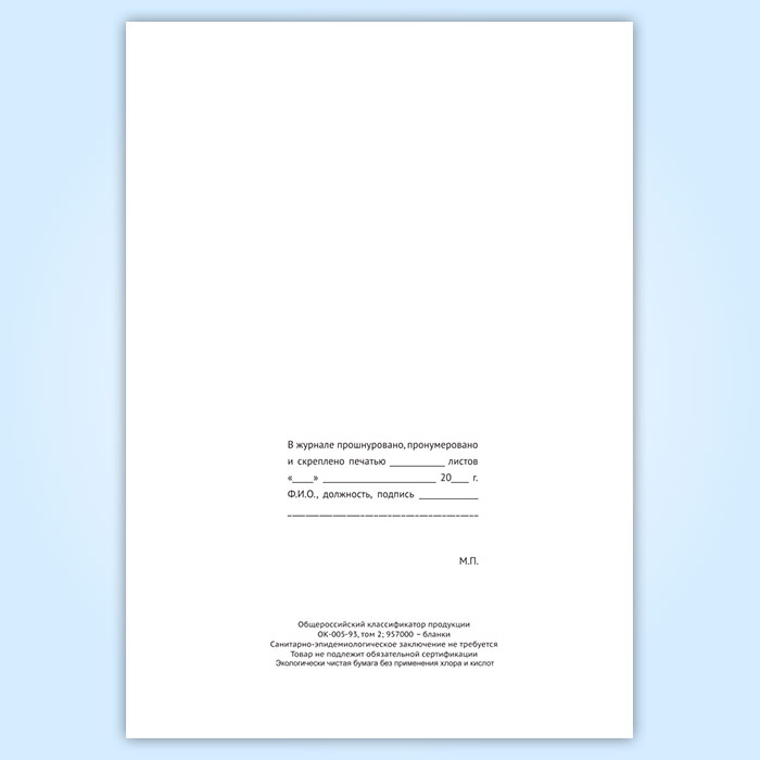 Вы получаете печатную продукцию прошнурованной и c местом для вашей печати в соответствии с действующими нормативными документами: