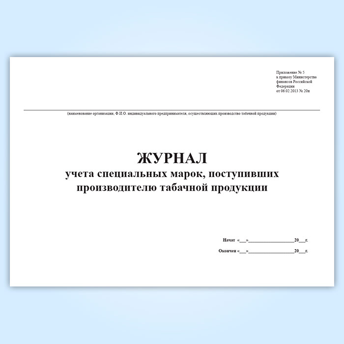 Журнал учета специальных марок, поступивших производителю табачной продукции в Улан-Удэ купить