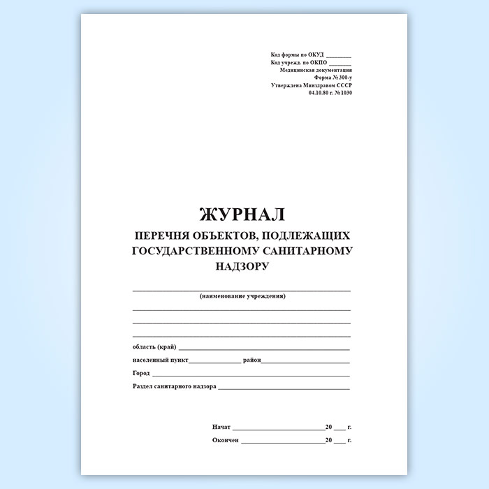 Журнал перечня объектов, подлежащих государственному санитарному надзору (форма 300/у) в Улан-Удэ купить