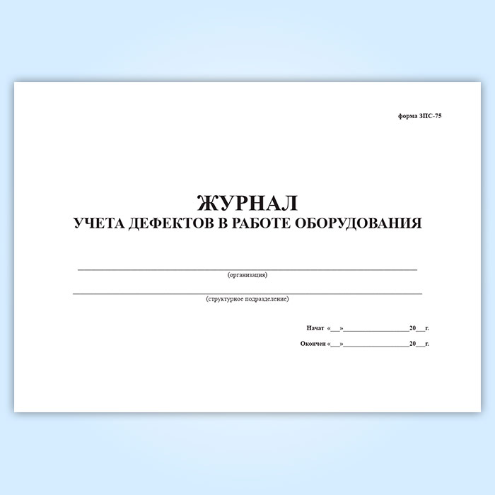 Журнал учета дефектов в работе оборудования (форма ЗПС-75) в Улан-Удэ купить