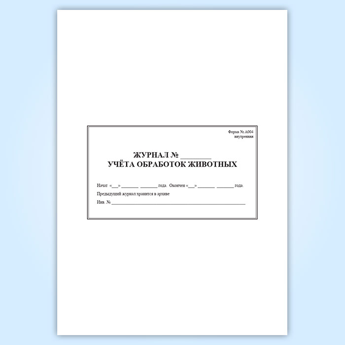 Журнал обработки животных (форма А 004) в Улан-Удэ купить