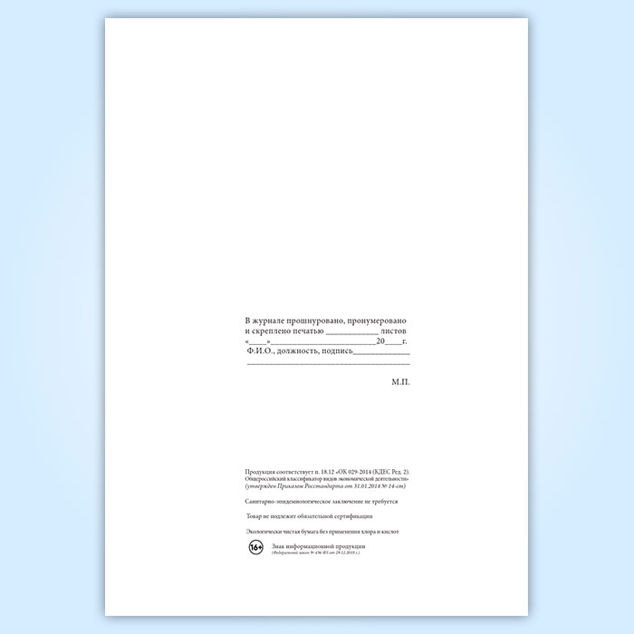 Вы получаете печатную продукцию прошнурованной и c местом для вашей печати в соответствии с действующими нормативными документами: