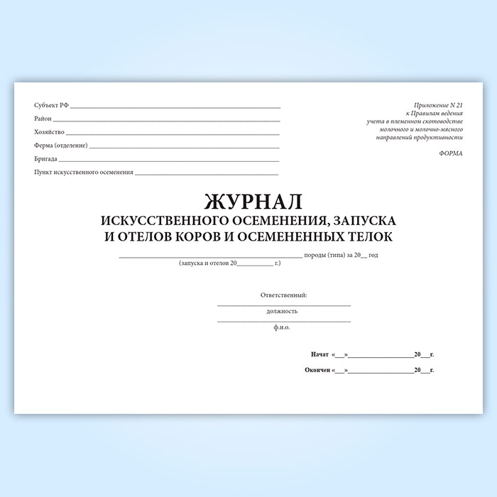 Журнал искусственного осеменения, запуска и отелов коров и осемененных телок в Улан-Удэ купить