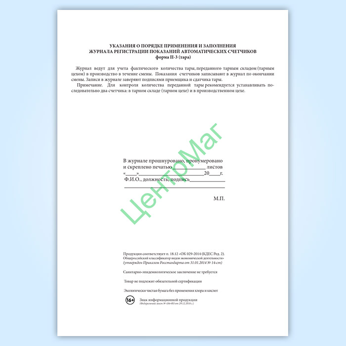 Журнал регистрации показаний автоматических счетчиков (форма № П-3 тара) в Улан-Удэ купить