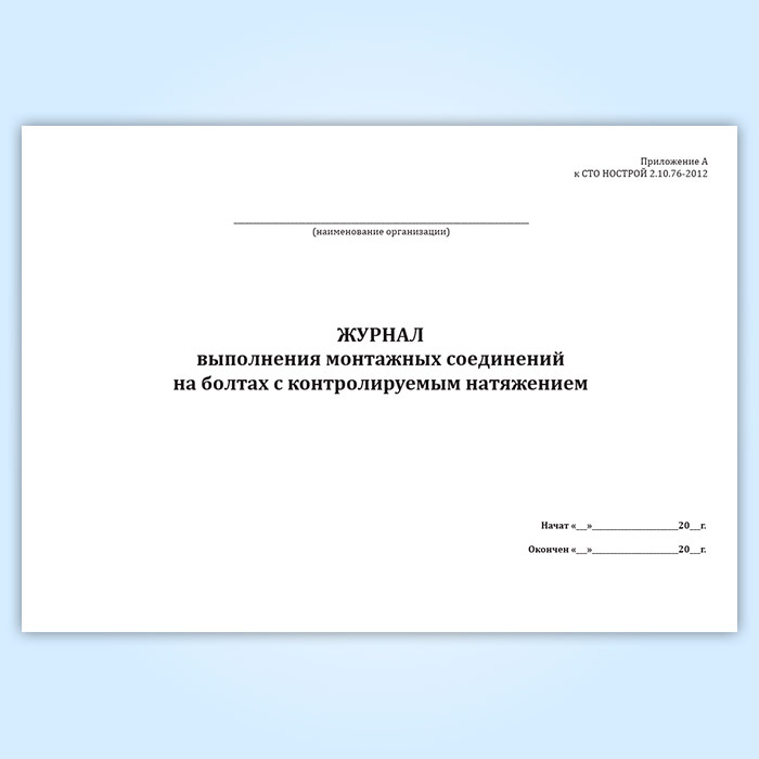 Журнал выполнения монтажных соединений на болтах с контролируемым натяжением (СТО НОСТРОЙ 2.10.76-2012) в Улан-Удэ купить