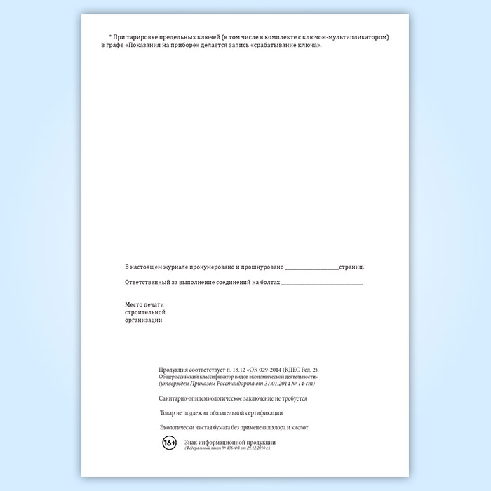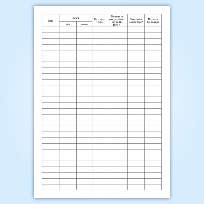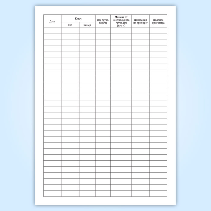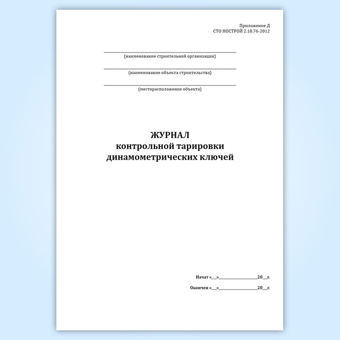 Журнал контрольной тарировки динамометрических ключей (СТО НОСТРОЙ 2.10.76-2012) в Улан-Удэ купить