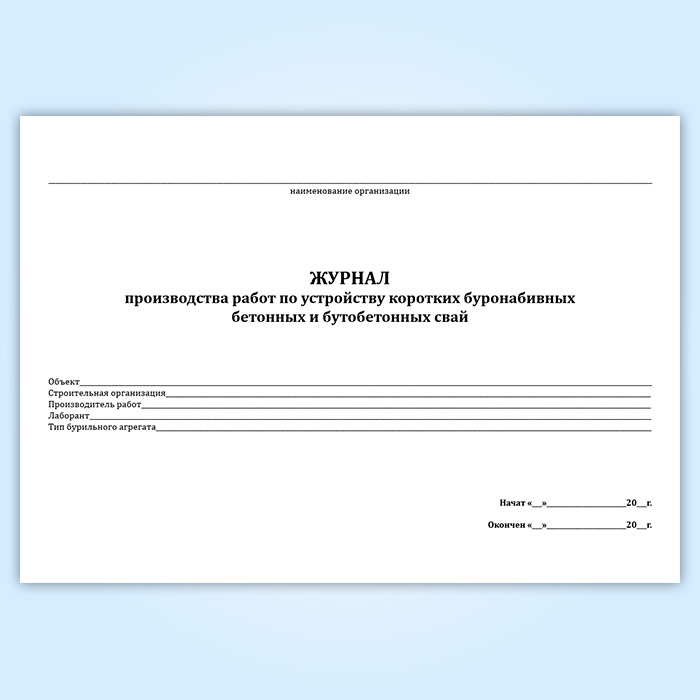 Журнал производства работ по устройству коротких буронабивных бетонных и бутобетонных свай в Улан-Удэ купить