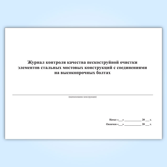 Журнал контроля качества пескоструйной очистки элементов стальных мостовых конструкций с соединениями на высокопрочных болтах в Улан-Удэ купить