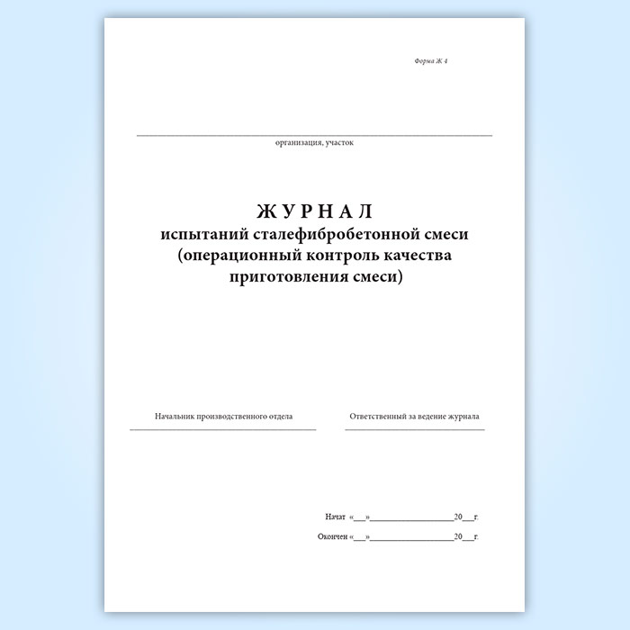 Журнал испытаний сталефибробетонной смеси (операционный контроль качества приготовления смеси) (форма Ж 4) в Улан-Удэ купить