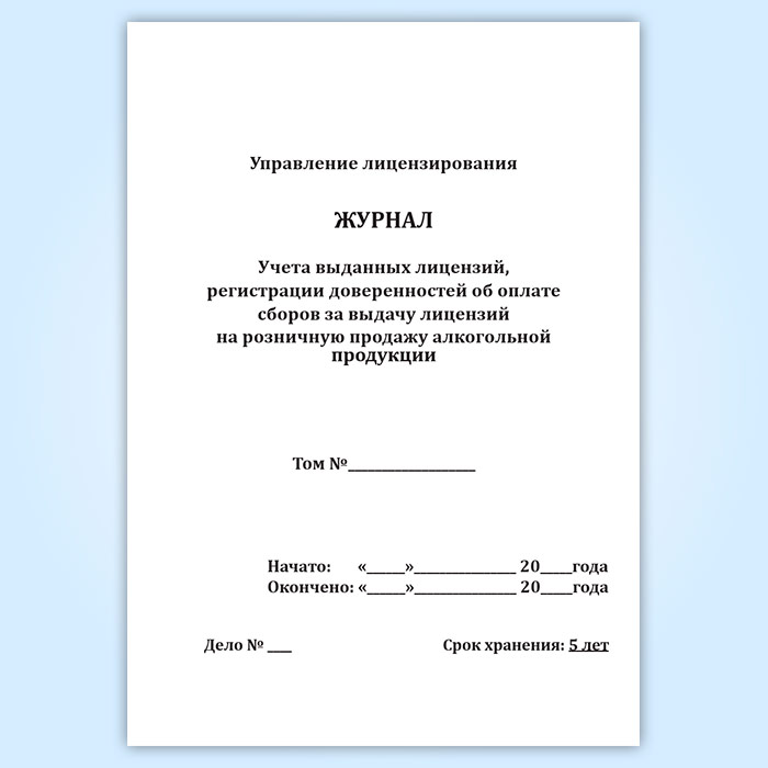 Журнал учета выданных лицензий, регистрации доверенностей об оплате сборов за выдачу лицензий на розничную продажу алкогольной продукции в Улан-Удэ купить