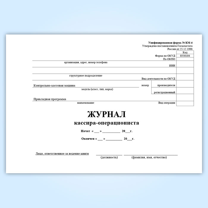 Журнал кассира-операциониста, горизонтальный (форма № КМ-4) в Улан-Удэ купить